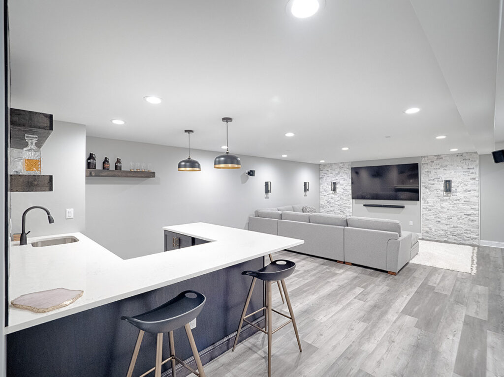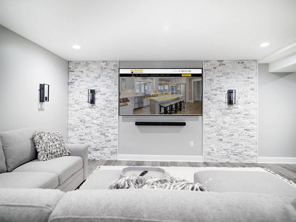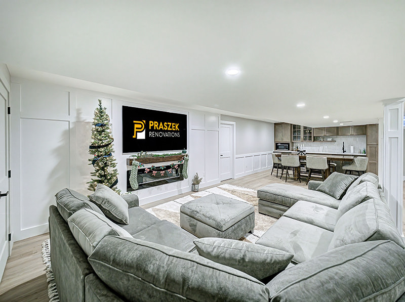 Praszek Renovations has finished basements with a multitude of features and amenities, including bars, wet bars, game rooms, custom gyms, movie theaters, man caves, bathrooms, custom cabinetry, closets and storage spaces and more – the possibilities are almost endless.