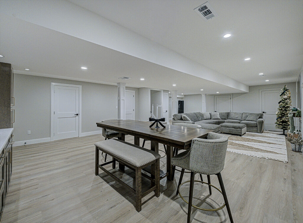 Based on your preference and local building code, we will use wood or metal to frame out your basement. We will add insulation, heating and air conditioning, wiring, and plumbing as needed while building out your space, ensuring everything is installed safely and efficiently. Our team will coordinate each phase of construction to keep the project on schedule and minimize disruption to your home.