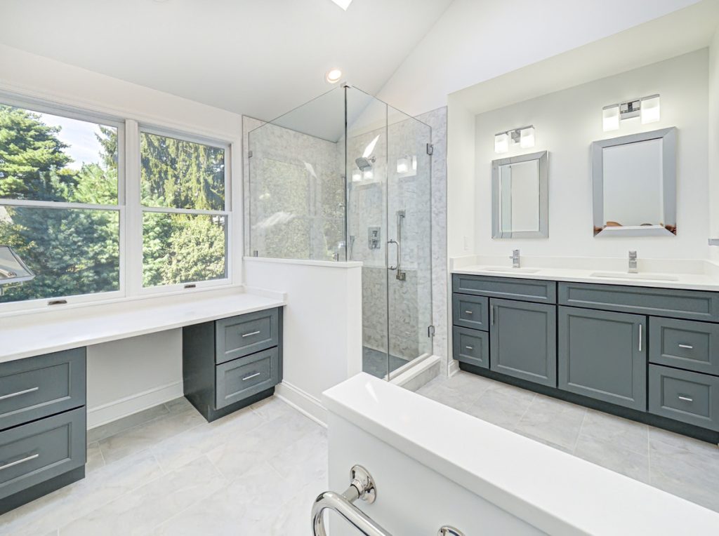 First, we’ll refer you to our expert bathroom designer to establish your goals for a partial or full remodel. If a whole new look and feel are what you’re after, we can totally gut your bathroom and recreate it with lovely contemporary fixtures and materials. If you want a partial remodel, we will work with you to make that happen, producing a beautiful result with as little disruption as possible.