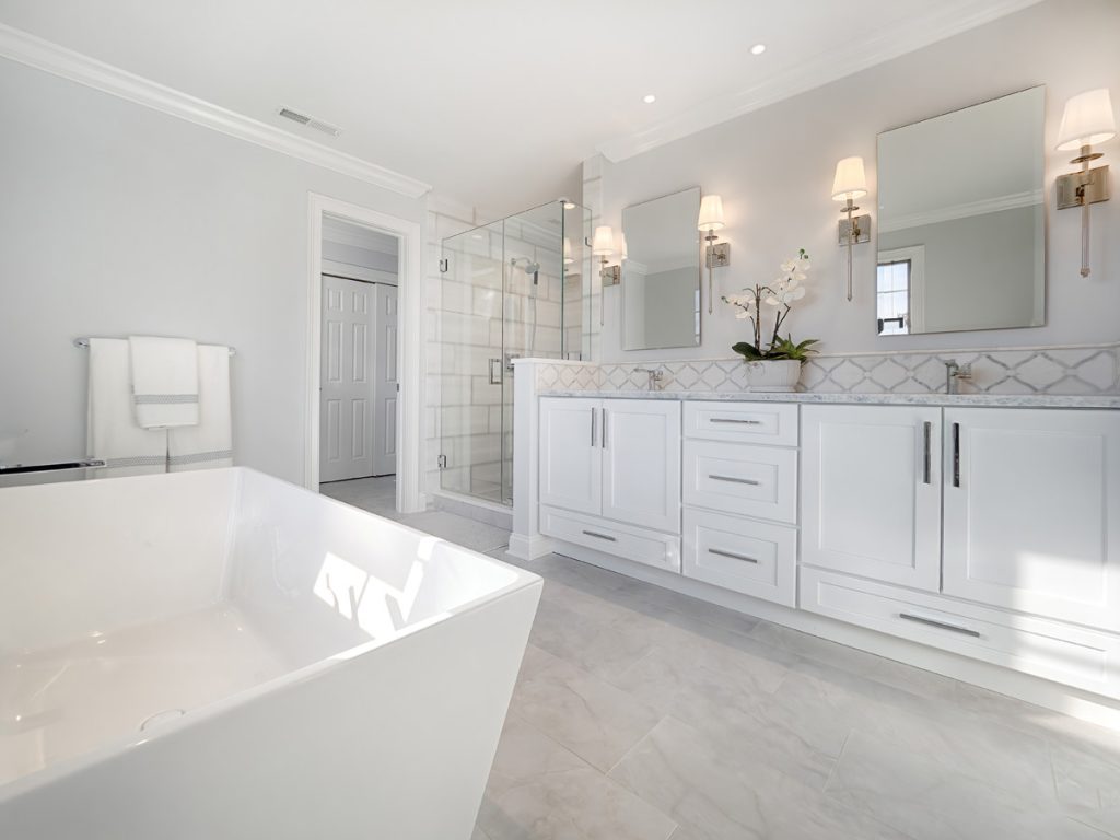 The construction process starts with carefully removing the existing tub, flooring, fixtures, vanity, and, if required, sections of wall to make way for necessary improvements. This allows us to install proper insulation, waterproofing, new sheetrock, and any updated plumbing or electrical work the project calls for. During this phase, you’ll have time to finalize selections such as tile, paint colors, cabinetry styles, countertops, and lighting so every detail reflects your preferences and fits the overall design.